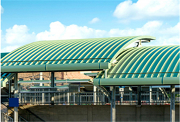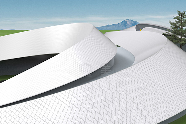 此為眉山展覽館項(xiàng)目,此屋面系統(tǒng)采用的是新型建筑材料金屬...